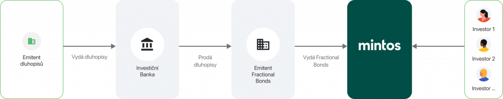 Když na Mintosu investujete do Fractional Bonds, nakupujete cenné papíry kryté dluhopisy. Příslušný dluhopis tedy nedržíte přímo. Místo toho máte ve svém portfoliu produkt Fractional Bonds vydaný zvláštní účelovou jednotkou ze skupiny Mintos, která vystupuje jako emitent. Emitent Fractional Bonds má ve svém portfoliu příslušný dluhopis a výnosy z něj předává Vám. Fractional Bonds jsou dostupné pouze na Mintosu.