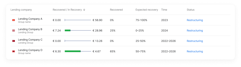 2023. gada 6. martā mēs laidīsim klajā jaunu kavēto maksājumu lapu, lai uzlabotu pārredzamību attiecībā uz kavētajiem maksājumiem. Šajā lapā būs redzams Tavu atgūšanas procesā esošo maksājumu sadalījums, kā arī atgūtās summas. Tā aizstās pašreizējo “Atgūšanas procesā” lapu Tavā Mintos kontā, un tai varēs piekļūt tādā pašā veidā.