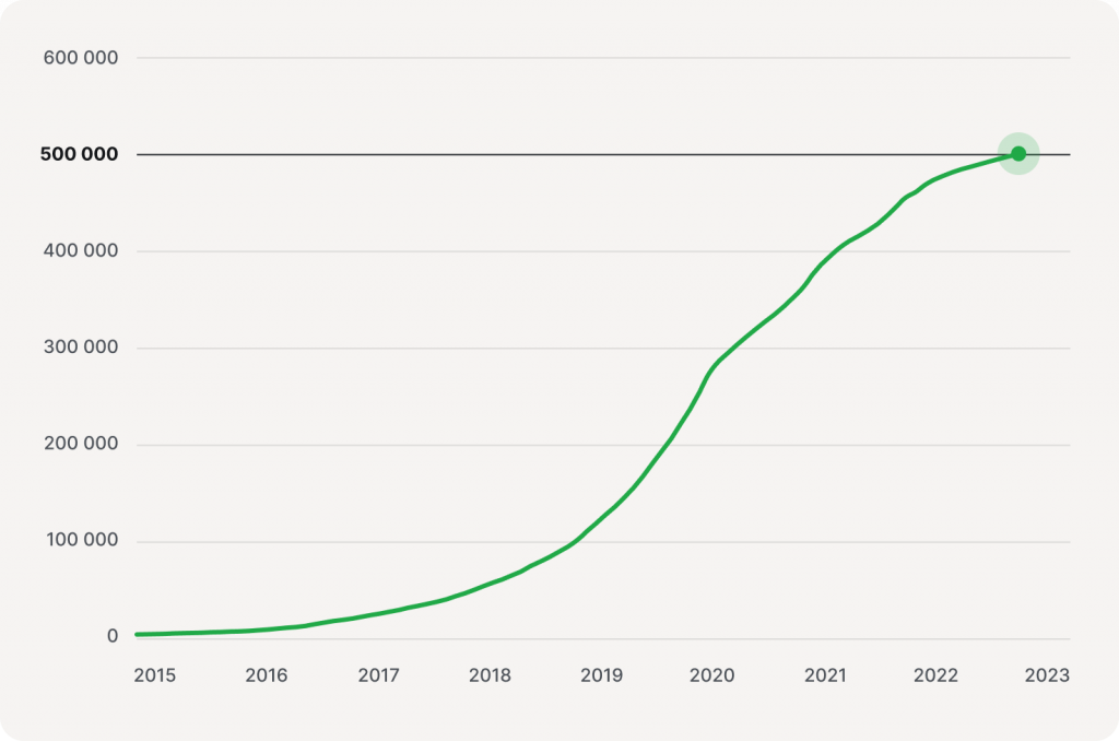 We’re happy to share that we’ve reached a new milestone of 500 000 registered users on Mintos. Over the course of 2022, we experienced a steady growth in registrations, with an average of 4372 users joining each month.