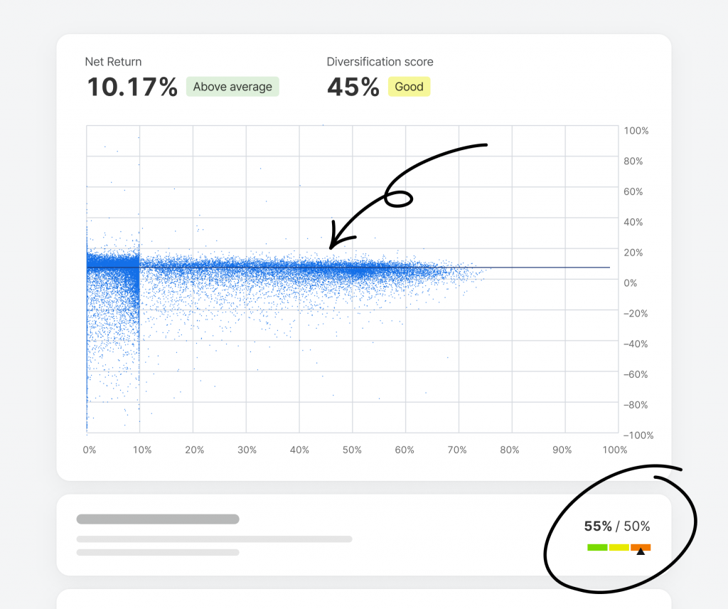 Accessed directly through your Mintos account, the diversification dashboard shows your portfolio’s level of diversification and compares it with others on Mintos. Plus, it provides a detailed breakdown of your Mintos Diversification Score.
